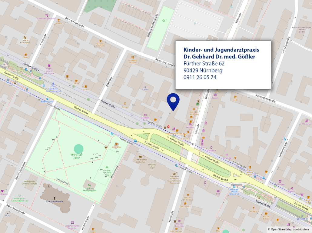Unsere Praxis liegt in Nürnberg-Gostenhof, nicht weit vom Zentrum in Richtung Fürth.